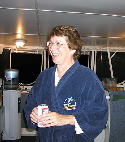 One of the best parts of the live-aboard experience was sharing five uninterrupted days of great diving with other divers. Of course, when you're stuck on a 100-foot boat for a week with the same 24 people 24 hours a day, it could be, well, interesting. Fortunately we had an absolutely terrific crew and a great bunch of compatible passengers. (Except for Strange Neil, of course. Well, you can't win 'em all.)