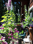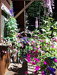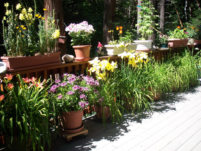 Mike's mom Ellen and stepfather Cliff live only a few miles from our property. Ellen loves to garden, and springtime is a riot of container color on the decks of her house.