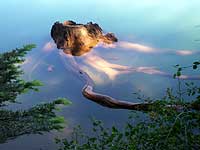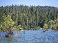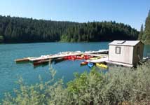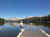 On another outing, we drove twenty miles up in the mountains to enjoy the peaceful vista of isolated Wright's Lake. Despite the ramp I'm standing on (picture at left), no motorized boats are allowed here.
