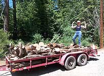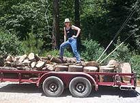We spent a few days carving up dead trees into firewood for Mike's parents, who use a wood-burning stove for heat in the winter. Believe it or not, I actually helped Mike wrestle some of those giant rounds onto the trailer.  And I had absolutely nothing to do with the flat tire we discovered after he took these pictures.