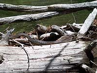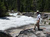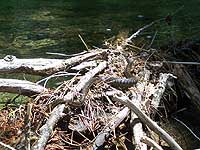 These clear, icy waters originate in high Sierra lakes and recklessly plunge thousands of feet to feed the American River below. While admiring the rushing river, we disturbed a slinky fellow napping in the sun.