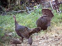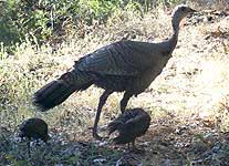 We were privileged to be here in the spring and see so many young creatures being raised. But we also saw the cruelty and relentlessness of nature. In our first week, we got to know a particular turkey hen and her four chicks. As she returned over the days, the number of chicks dwindled to three. Later in our visit, that mother hooked up with a second hen who was trailed by a very tiny chick, less than half the size of the three we knew. Only a few days later the same pair of hens returned to our camp to graze, but the tiny chick was nowhere to be seen, probably the victim of a fox or coyote.