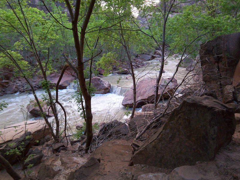We had hoped to do this walk as part of the more difficult Narrows hike -- a real river walk, in it not just beside it -- but due to excessive water flow in the river, the Narrows was closed to hiking. I guess I can see why. I guess maybe I'm a little glad. This one might have been biting off too much.