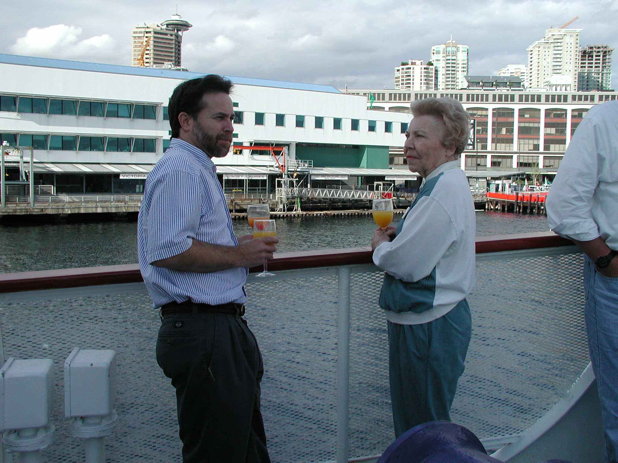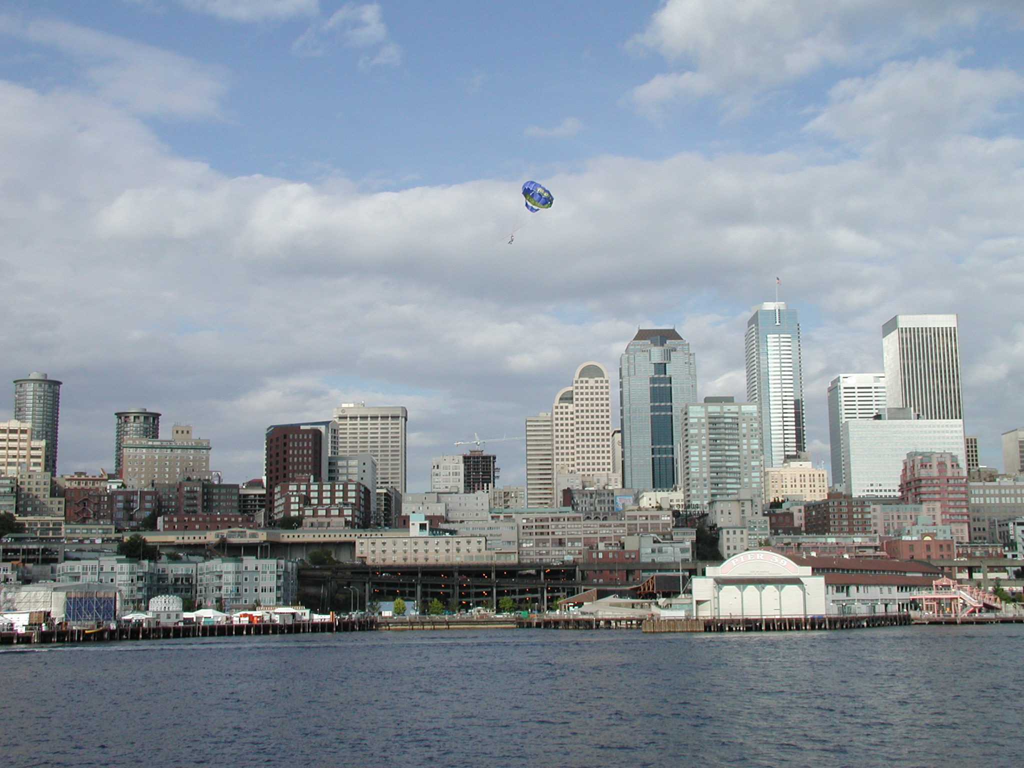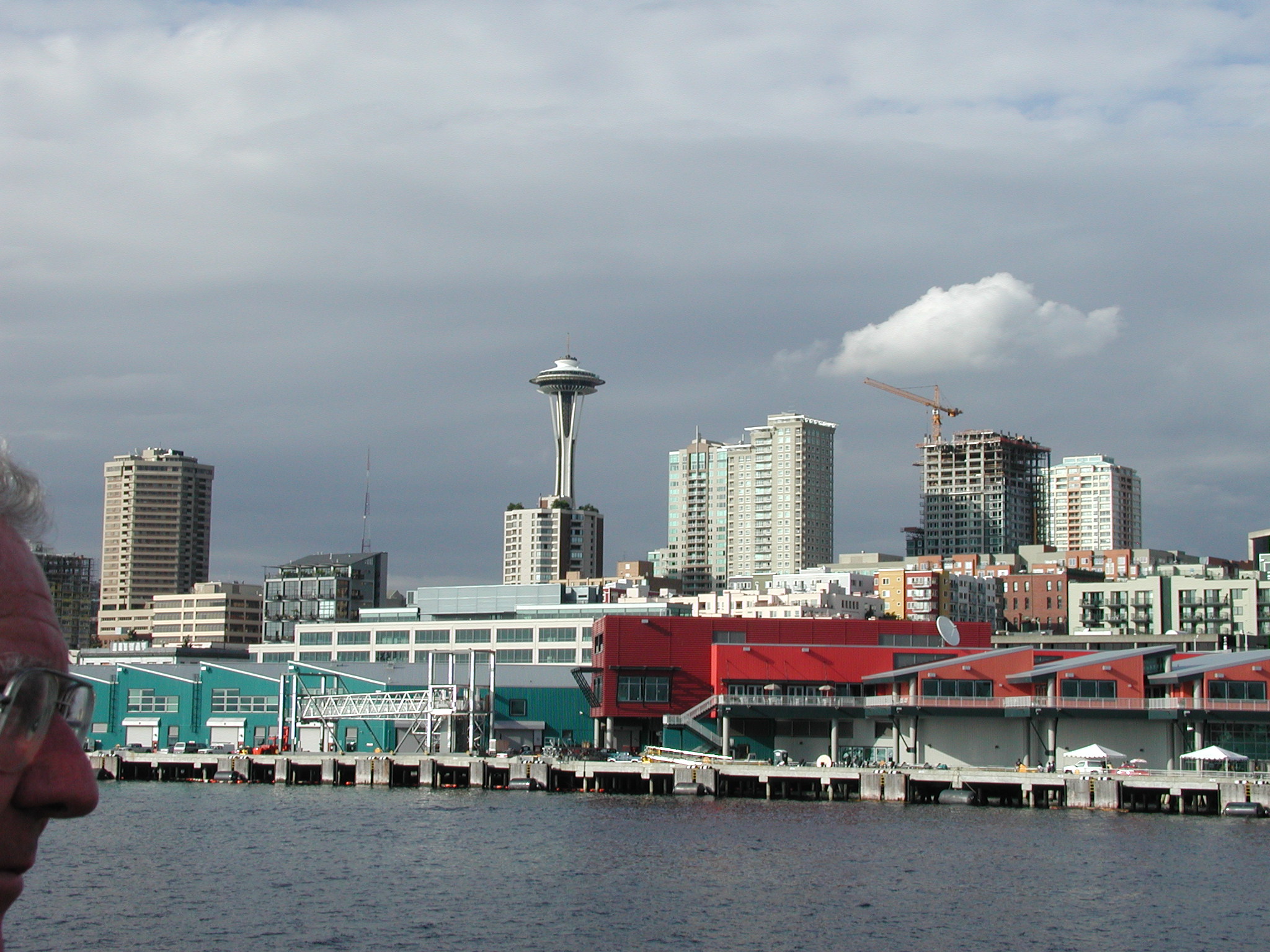Our flight to seattle is short and uneventful, unless you count a slight pilot miscalculation on the seattle runway -- ba-da-BOOM, ba-da-BING. As we make our descent into seattle, we get a sudden breathtaking window view of Mount Rainier, poking its snow-capped head five hundred feet above the cloud layer. I later learn that I should have taken a photo; this peak is almost as elusive as Mt. McKinley.