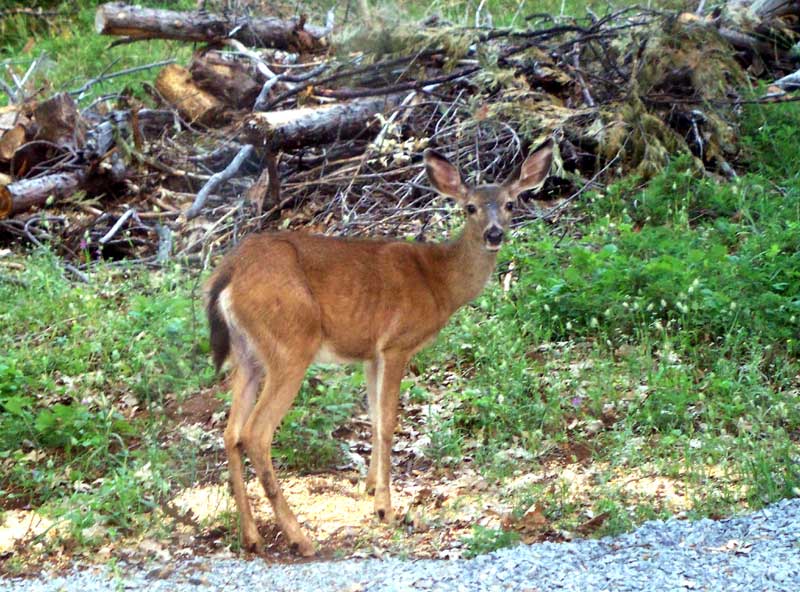 A doe visited our camp regularly with her yearling (photos above). On our last week in camp, we began to see the yearling alone. While it's possible the two parted ways, we feared that the more likely truth was that the young one had lost its mother to a car or a poacher.