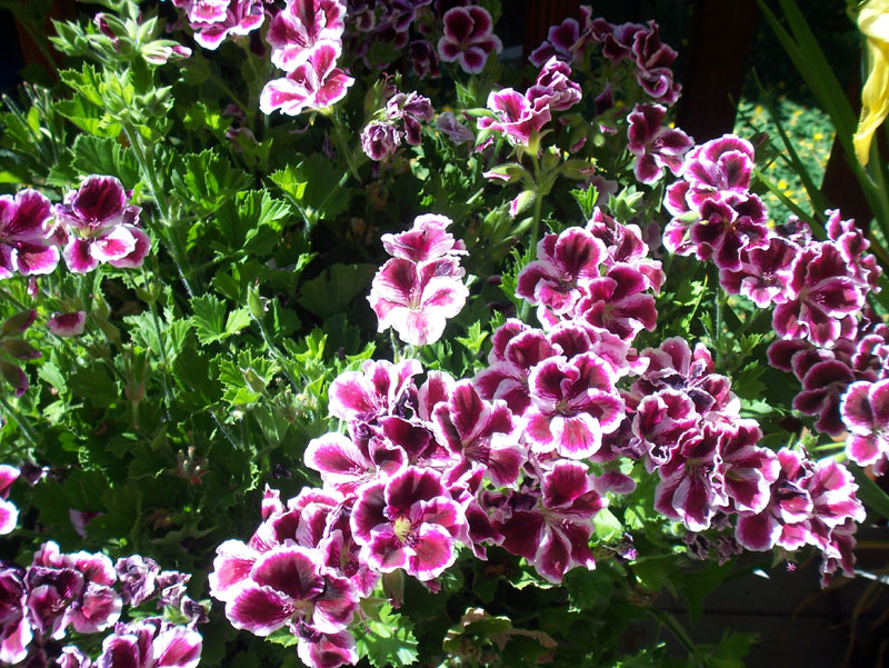Mike's mom Ellen and stepfather Cliff live only a few miles from our property. Ellen loves to garden, and springtime is a riot of container color on the decks of her house.