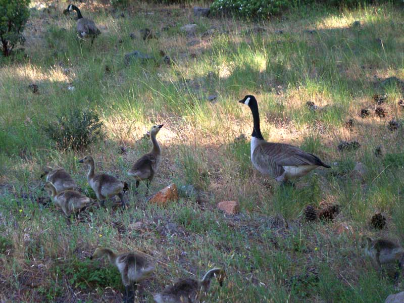 As was to be expected, the lake was considerably lower than its high-water mark just after the snow melt. There were still plenty of geese around, and I couldn't help wondering which of them were the grown-up fluffballs we'd seen tailgating their mommas just a few months earlier.