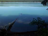 On another outing, we drove twenty miles up in the mountains to enjoy the peaceful vista of isolated Wright's Lake. Despite the ramp I'm standing on (picture at left), no motorized boats are allowed here.
