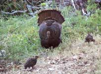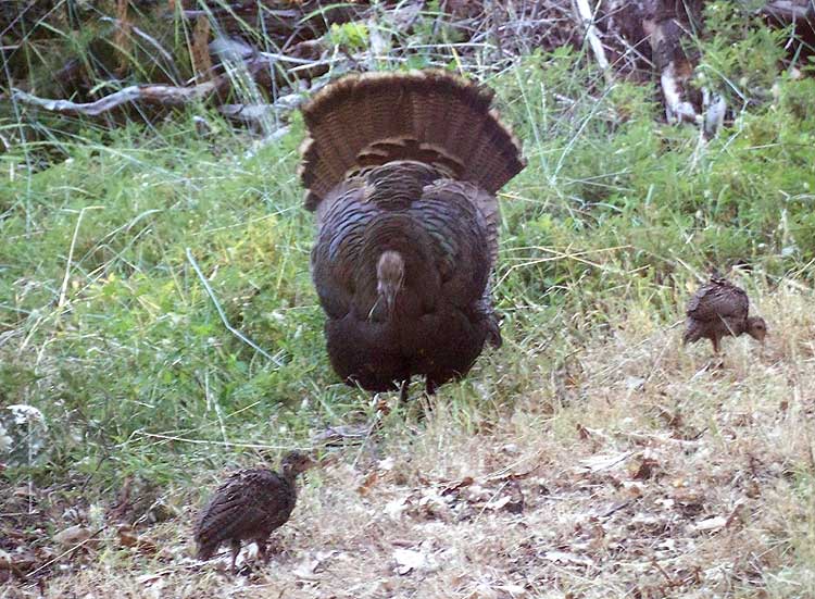 We were privileged to be here in the spring and see so many young creatures being raised. But we also saw the cruelty and relentlessness of nature. In our first week, we got to know a particular turkey hen and her four chicks. As she returned over the days, the number of chicks dwindled to three. Later in our visit, that mother hooked up with a second hen who was trailed by a very tiny chick, less than half the size of the three we knew. Only a few days later the same pair of hens returned to our camp to graze, but the tiny chick was nowhere to be seen, probably the victim of a fox or coyote.