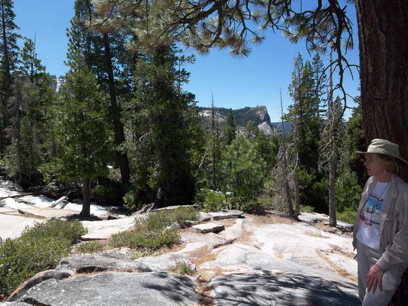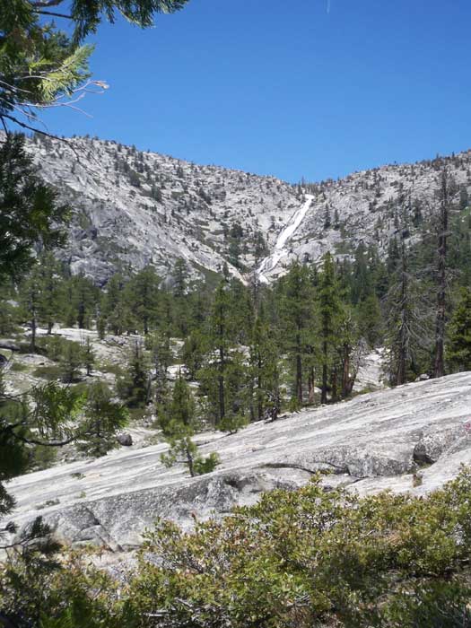 At Twin Bridges, we panted our way up a steep slope of barren rock to view Horsetail Falls plummeting down the sheer cliffs above us.