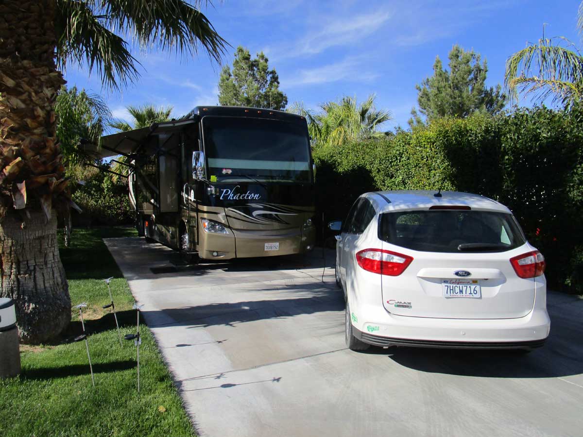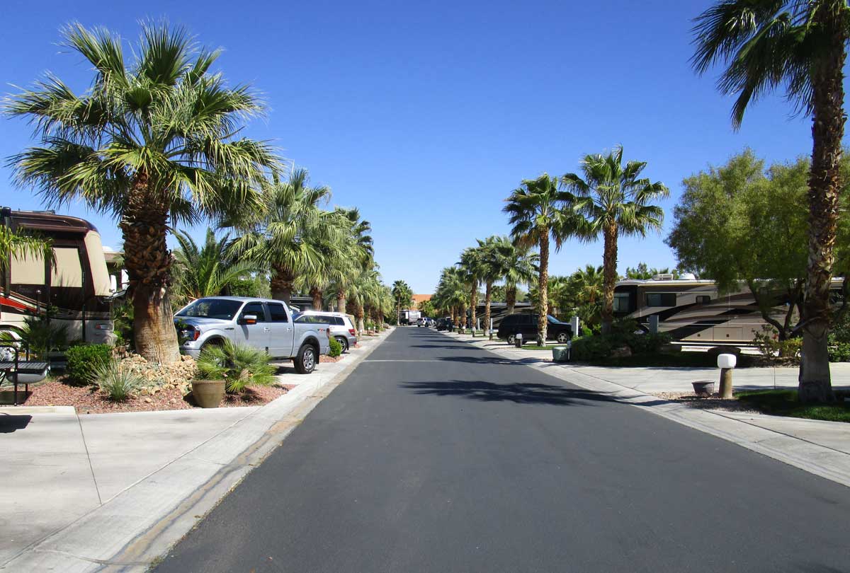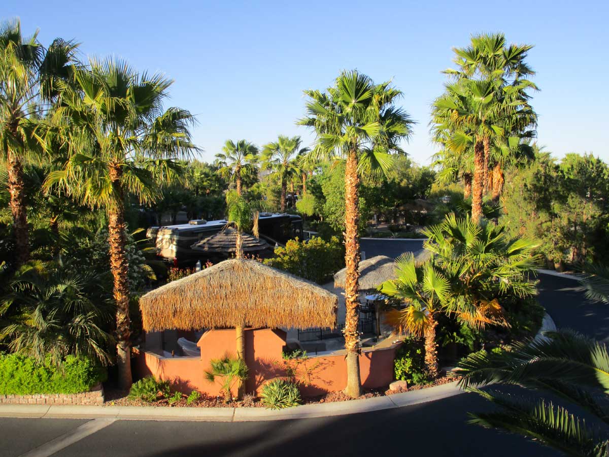 After a miserable overnight in Bakersfield, we hit the jackpot in the Las Vegas Motorcoach Resort, or as I call it, the Ritz-Carlton of RV parks. This is a class-A-motorcoach-only resort where you can buy a site and add improvements, such as built-in dining, outdoor kitchens, fireplaces, and even TVs. We started out renting an improved owner site, and later extended our stay for a few days in an unimproved site. Both were outstanding.
