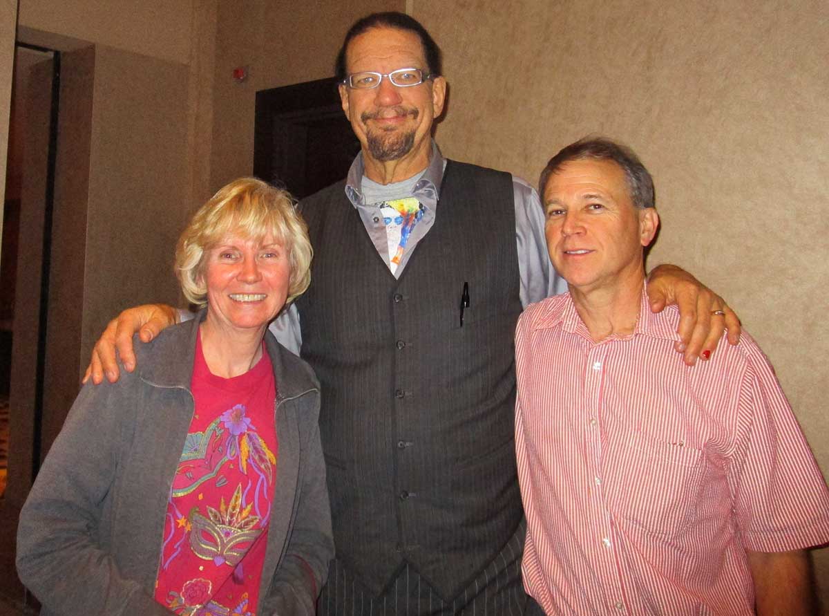 Besides visiting with Zelda as much as schedules would allow, we took in some other shows. I had seen Cirque du Soleil's "O" years ago from a very bad seat in the top balcony; this time our seats were excellent, elevated but close enough to watch all the fantastic technical workings and even see the scuba divers in the pool! We also saw Penn & Teller's long-running magic/comedy show, and got a photo with Penn afterward.